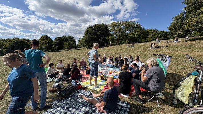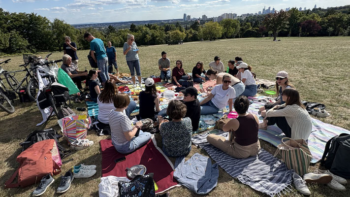 Am 24.08.2025 feierte der Popchor Frankfurt sein Sommerfest auf dem Lohrberg bei bestem Wetter. Mit Picknick und einem vielfältigen Buffet, zu dem alle Mitglieder beigetragen haben, war für
